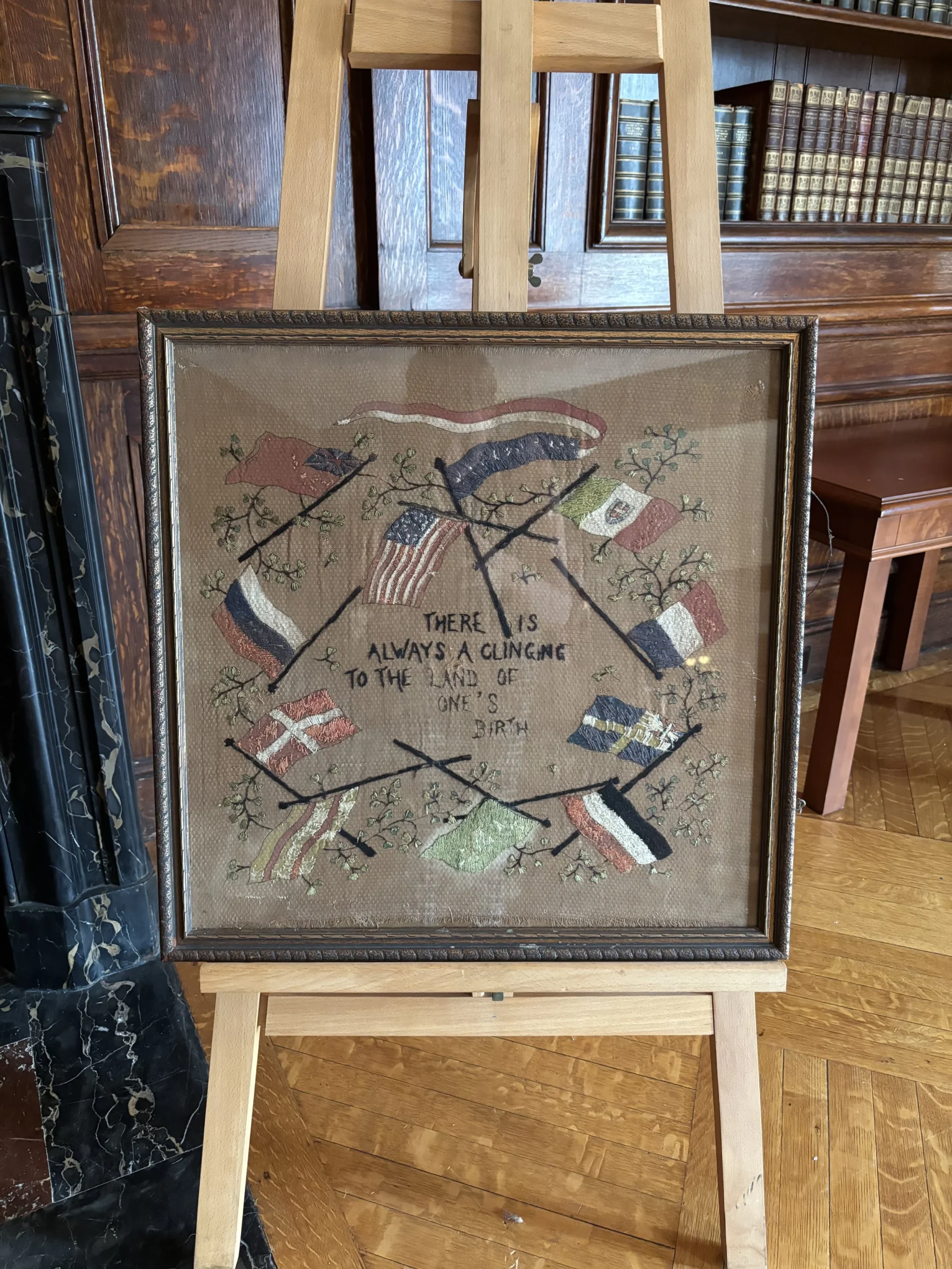 A handmade needlework tapestry by Charlotte Nestor Shiels, donated to AIHS by the artist’s granddaughter in 2018.