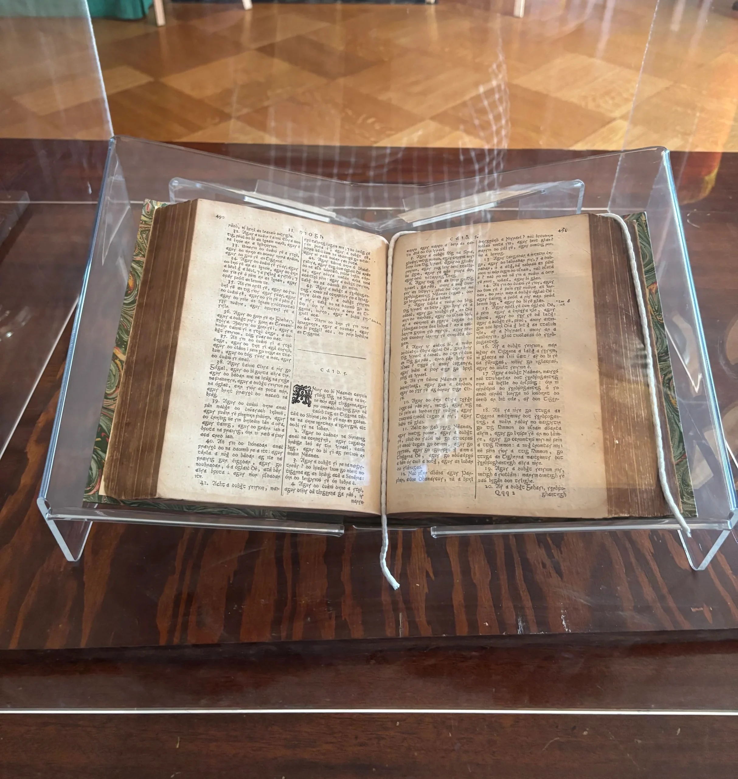 This is a First Edition of the first Bible ever produced in the Irish language, translated into Irish by William Bedell (1571–1642) and printed forty years after his death, in 1685. Only 500 copies were produced, and of these, AIHS houses two.