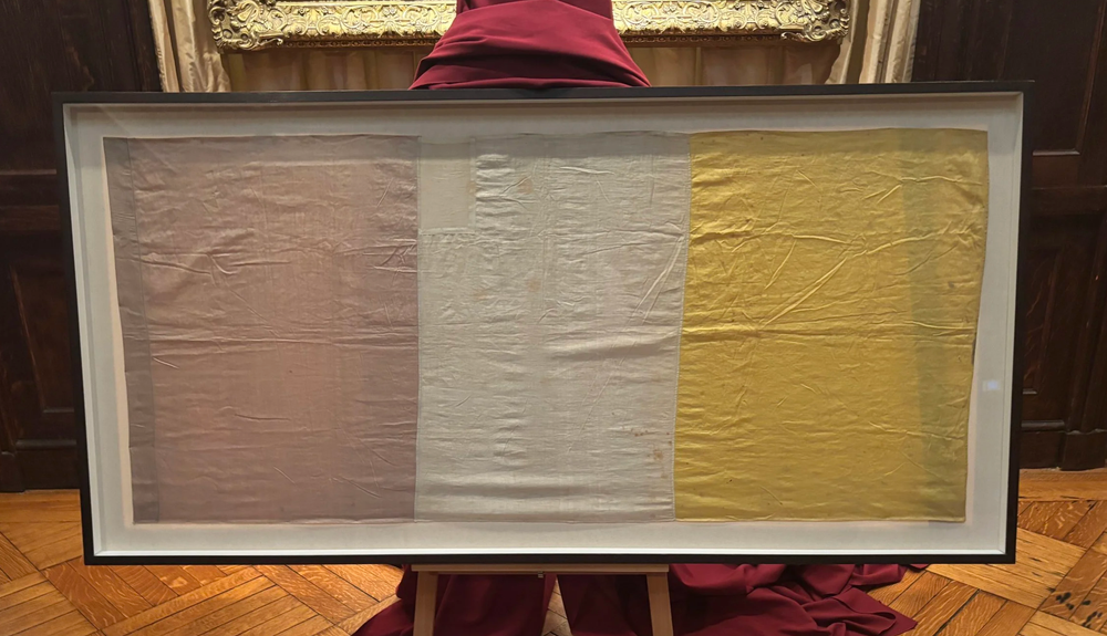 Opening the exhibition, we featured one of the most fascinating individual items housed at the American Irish Historical Society: the tricolour flag of Easter 1916.